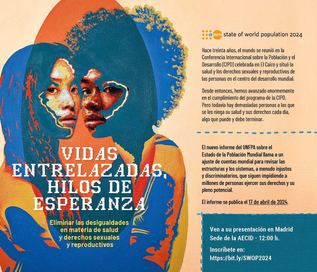 presentación, el próximo 17 de abril, del Informe sobre el Estado de la Población Mundial 2024, que acogemos en nuestra sede en Madrid y al que es posible asistir