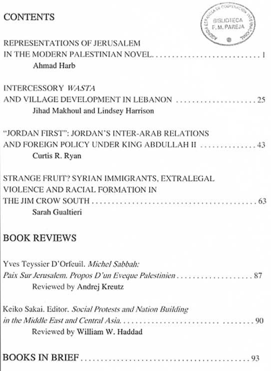 Está indexada en varias bases de datos, como Historical Abstracts, International Political Science Abstracts; America: History and Life; Political Science Abstracts; Periodica Islamica; e Index of Islamic Literature.