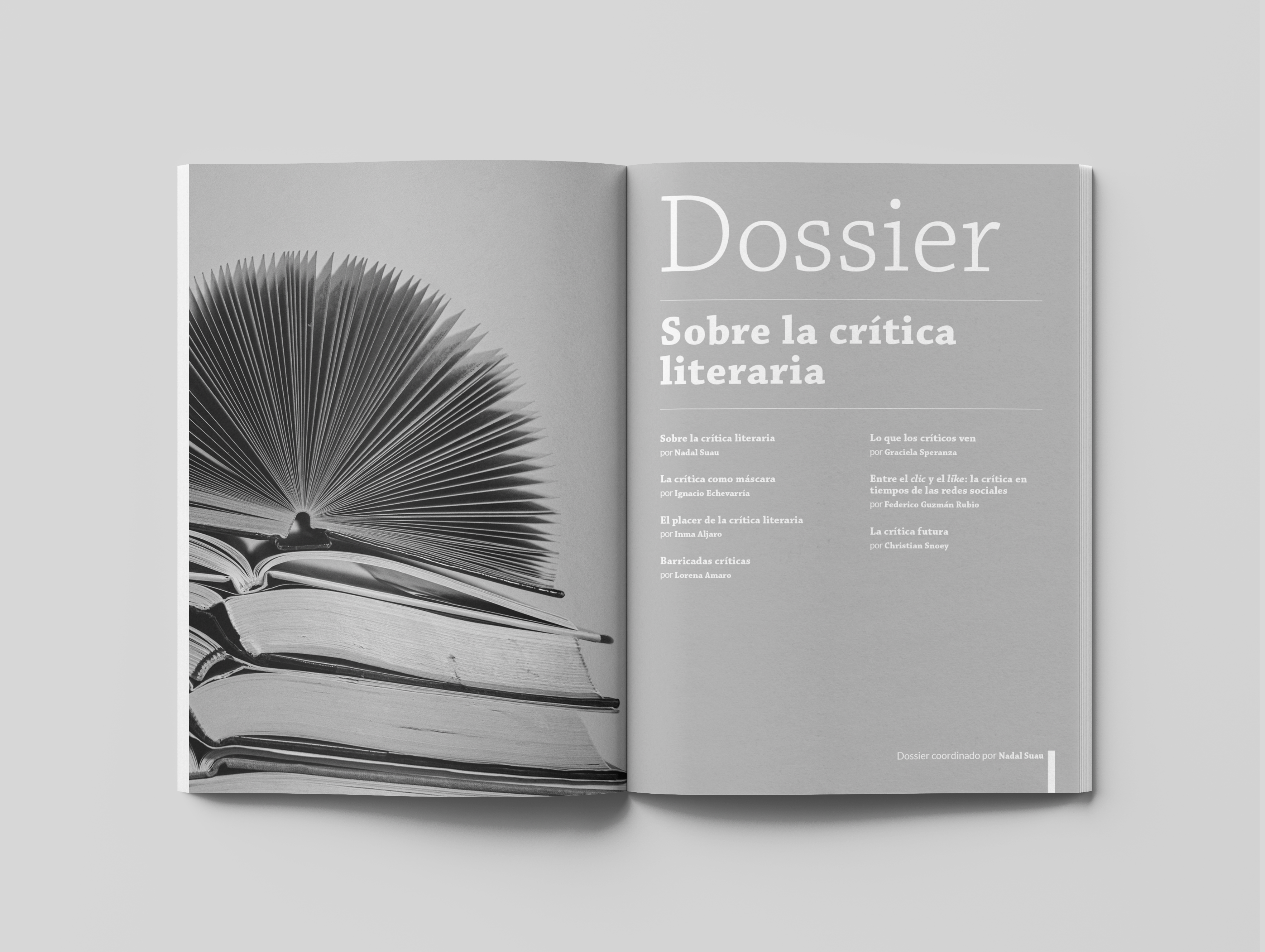 Además, el número ofrece un DOSSIER sobre crítica literaria, coordinado por el crítico Nadal Suau, en el que colaboran, entre otros, Ignacio Echevarría, Graciela Speranza o Lorena Amaro. En su sección MESA REVUELTA, aparece una crónica de la autora chilena Lina Meruana, inspirada en su participación en el festival Centroamérica Cuenta en Guatemala. Asimismo, Rodrigo Fresán nos ofrece un breve semblanza del escritor y cineasta español Gonzalo Suárez.