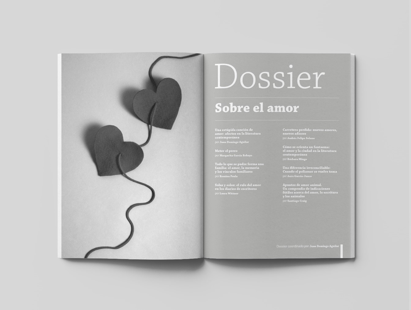 El DOSSIER central de este número está dedicado al amor. Juan Domingo Aguilar convoca a Margarita García Robayo, Romina Paula, Laura Wittner, Andrés Felipe Solano, Bárbara Mingo, Aura García-Junco y Santiago Craig para profundizar sobre los afectos en la literatura contemporánea.