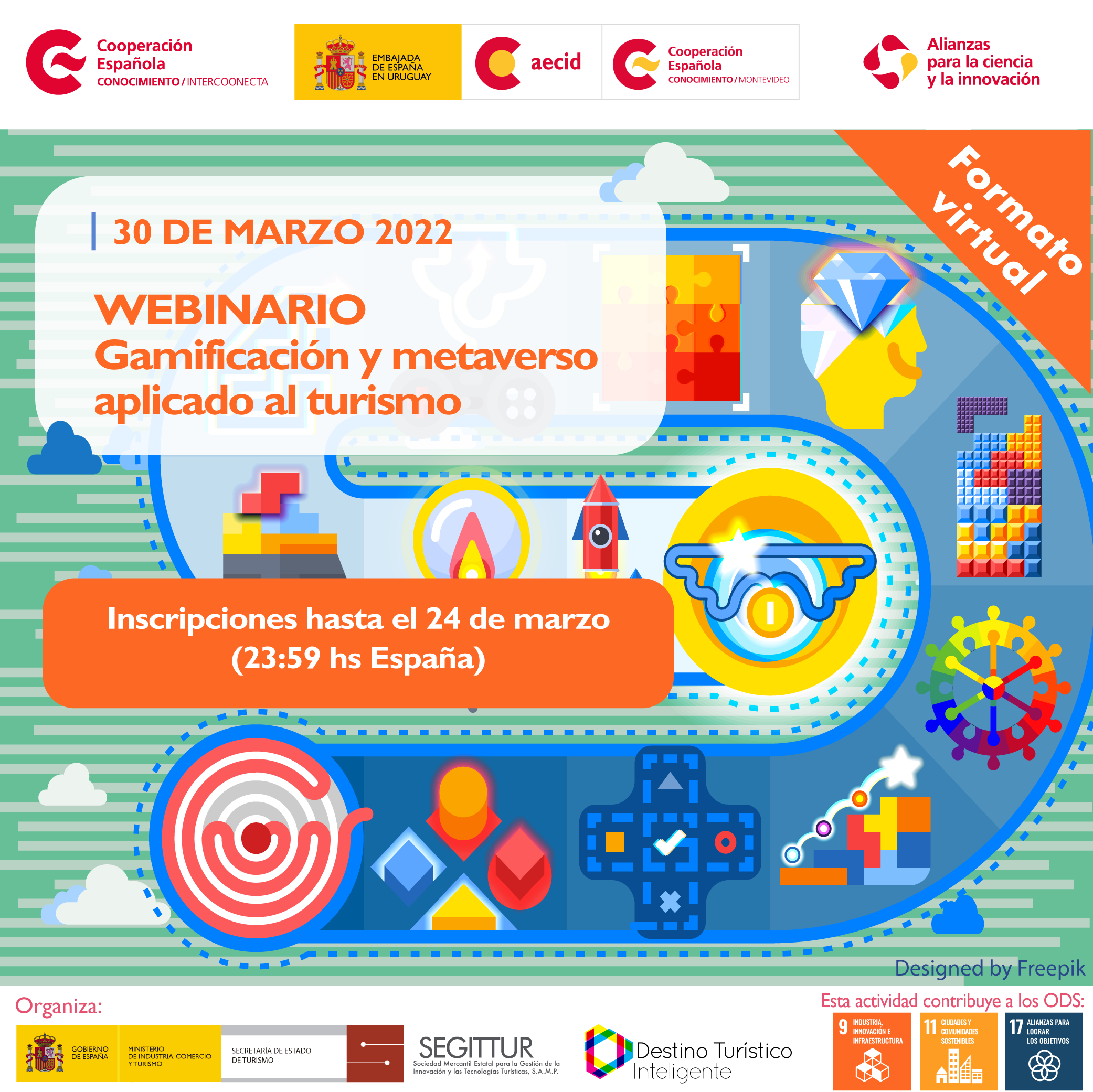 Convocatoria para webinario Gamificación y metaverso aplicados al turismo convocado por SEGITTUR y el Centro de Formación de la Cooperación Española en Montevideo.