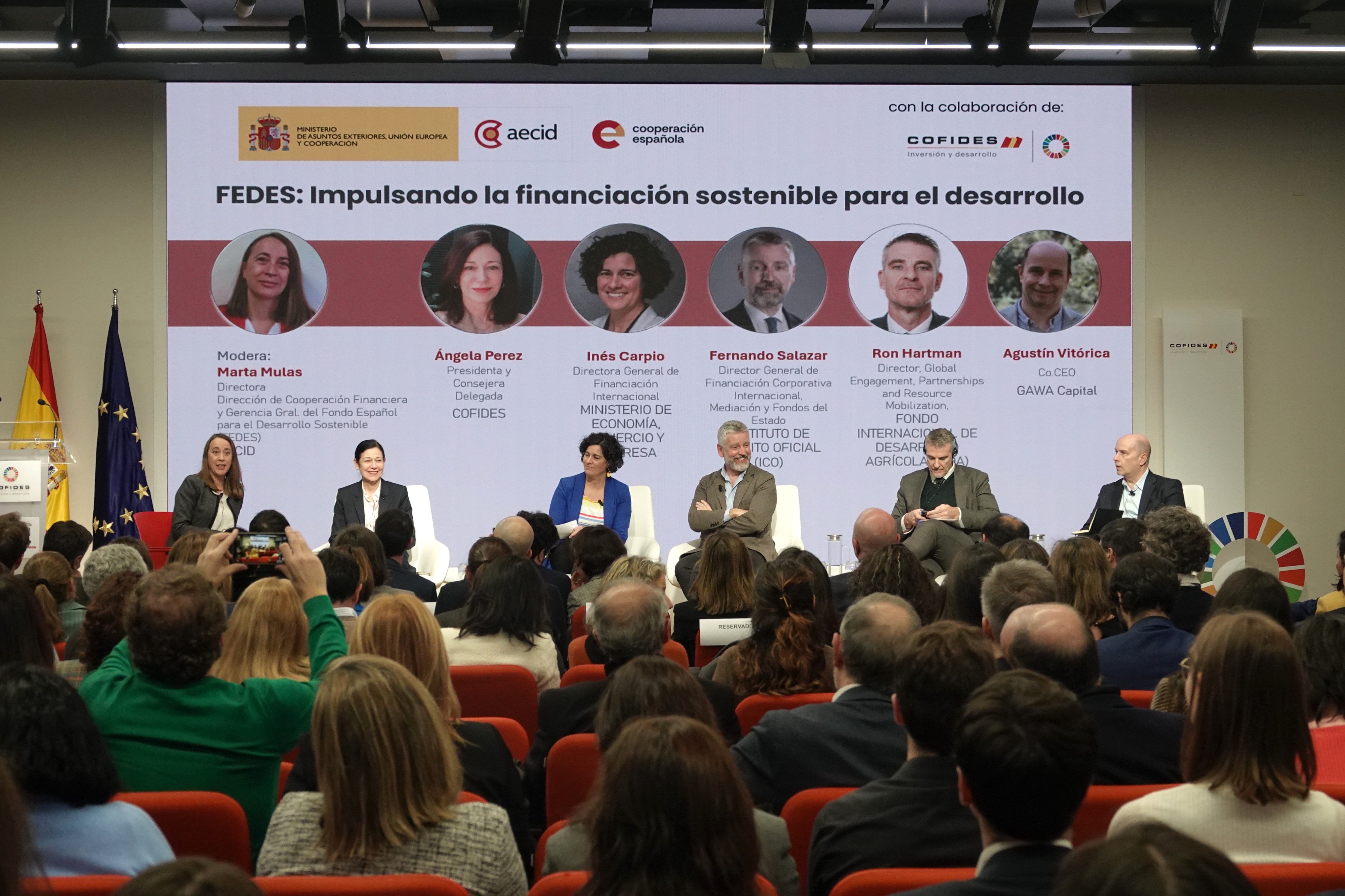 Entre otros objetivos, este evento, celebrado en la sede de COFIDES, buscaba dar visibilidad al FEDES como una herramienta estratégica de cara a movilizar financiación en un contexto donde el déficit de financiación anual de los Objetivos de Desarrollo Sostenible (ODS) alcanza los 4 billones de Euros, reforzar la coordinación entre actores públicos y privados en el ámbito de la financiación sostenible, y generar oportunidades de colaboración y networking entre administraciones y actores de cooperación, inversores privados, sociedad civil y organismos multilaterales.