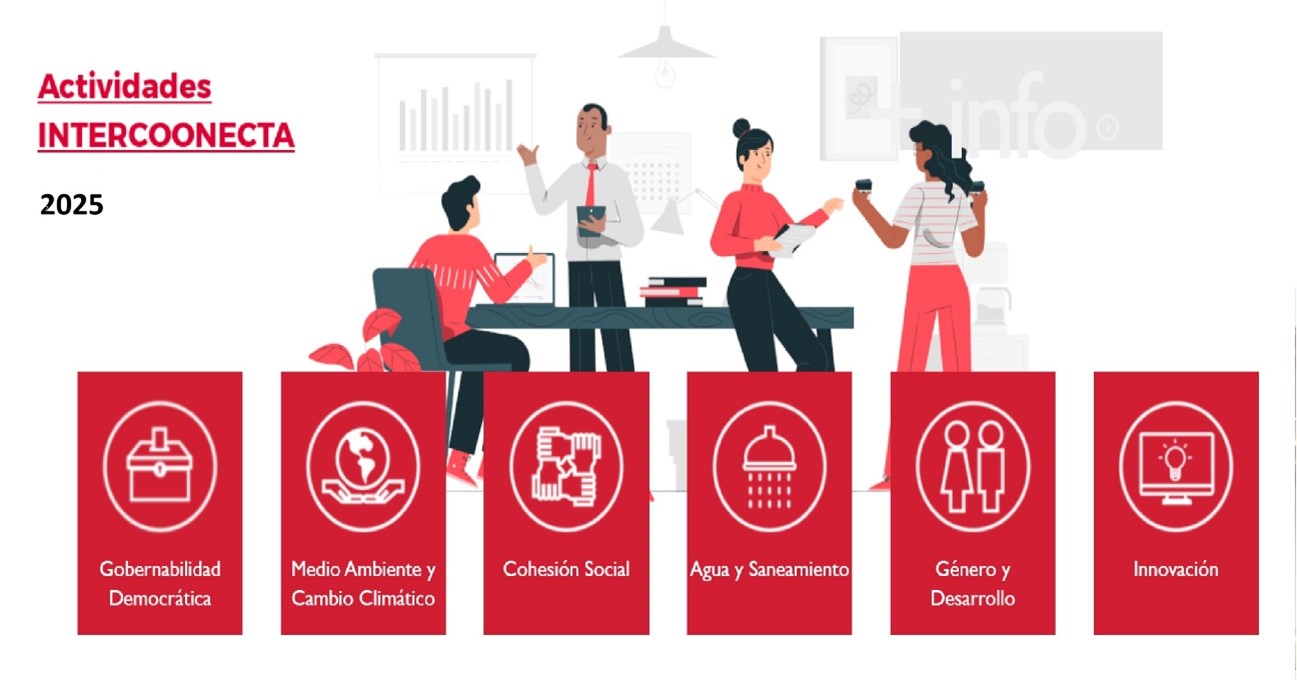 La Agencia Española de Cooperación Internacional para el Desarrollo (AECID) publica la programación de INTERCOONECTA 2025, el Programa de Transferencia, Intercambio y Gestión de Conocimiento para el Desarrollo de la Cooperación Española en América Latina y el Caribe, con más de 180 actividades que incluyen actividades técnicas y de capacitación.