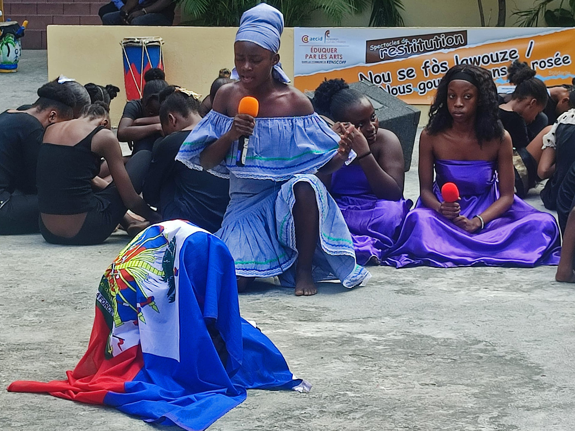 Tras una fase inicial de formación dirigida tanto a profesorado como a personal de directivo y administrativo de cuatro escuelas del municipio de Kenscoff (Haití), 253 estudiantes de educación básica participaron en este programa educativo de formación en Artes Plásticas, Teatro, Música y Danza.