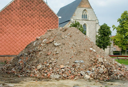 De igual modo, deconstruyendo edificios y otros monumentos y construcciones, Almarcegui desenreda lo que entendemos como morada y residencia, mostrando los materiales, desnudos e inexpresivos, de los que están hechos los edificios, o decubriendo los productos de reciclaje que utilizan y en lo que a su vez se terminan convirtiendo, para acercarnos a la naturaleza entrópica inherente de la civilización. Básicamente, estas obras conectan los exteriores con los interiores, y el interior con la conciencia de sí mismo, en un proceso dialéctico de conocimiento".