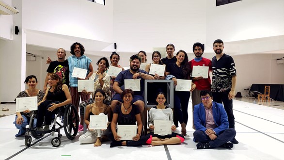 Participantes del taller Creación escénica a través del cuerpo [Teatro y danza inclusiva] organizado en 2023 por el CCESV en el Centro Nacional de Artes (CENAR), junto al actor, coreógrafo y formador español David Blanco Toyos | FOTO: Héctor Mejía